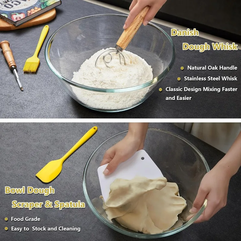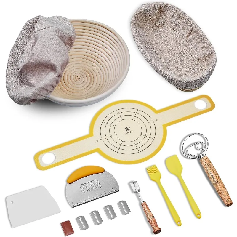 Sourdough Bread Baking Set, 10 Inch Oval & 9 Inch Round Banneton Bread Proofing Baskets with Linen Liner, Silicone Bread Sling